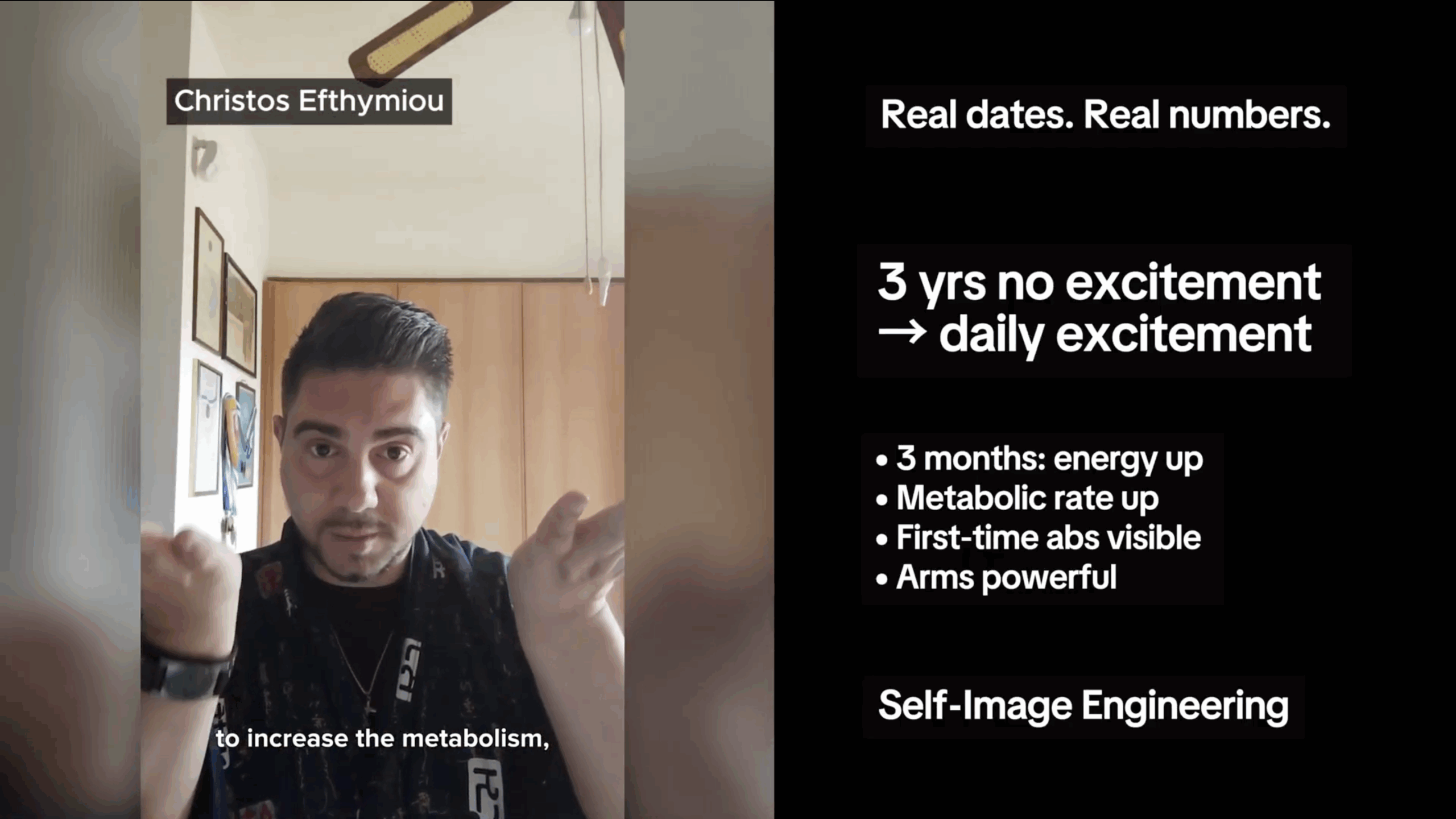 He wanted to break the cycles, finally achieve the physique he’d been chasing, and build an identity that wasn’t just about looks but about being a valuable man with purpose, high standards, and a strong network.