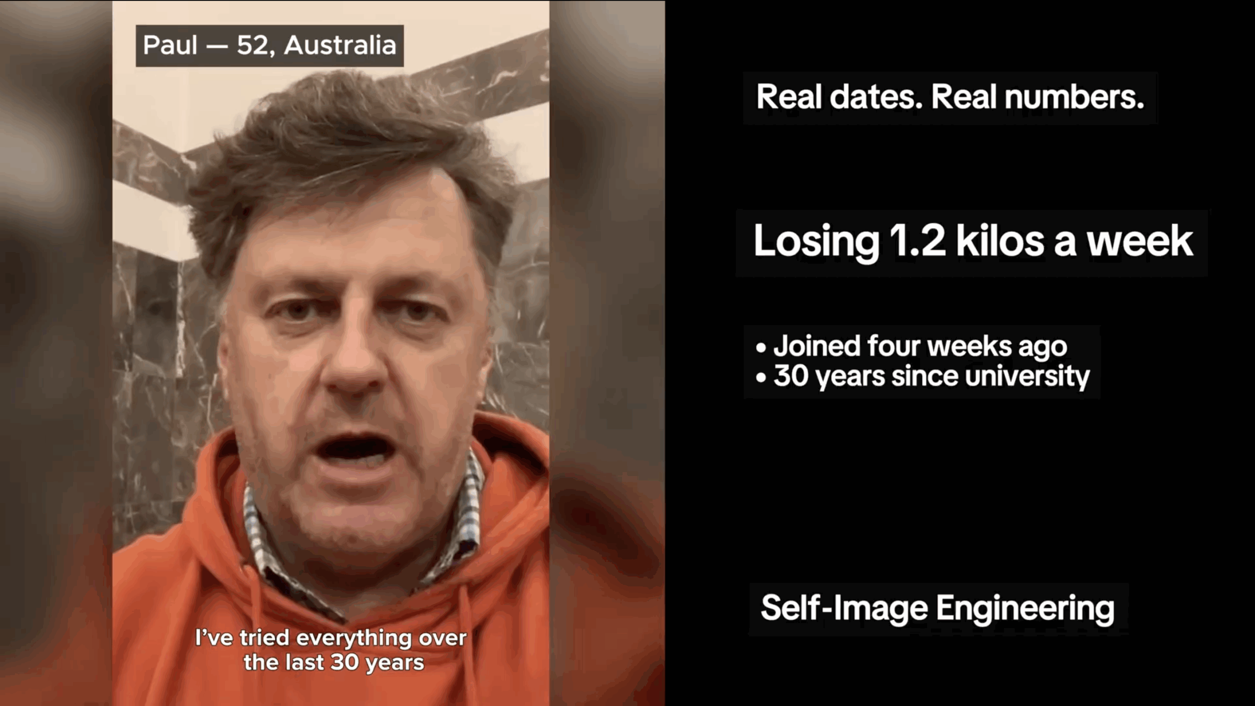 From 30 years of failed attempts to 1.2 kg per week fat loss and returning to his 20s body trajectory.